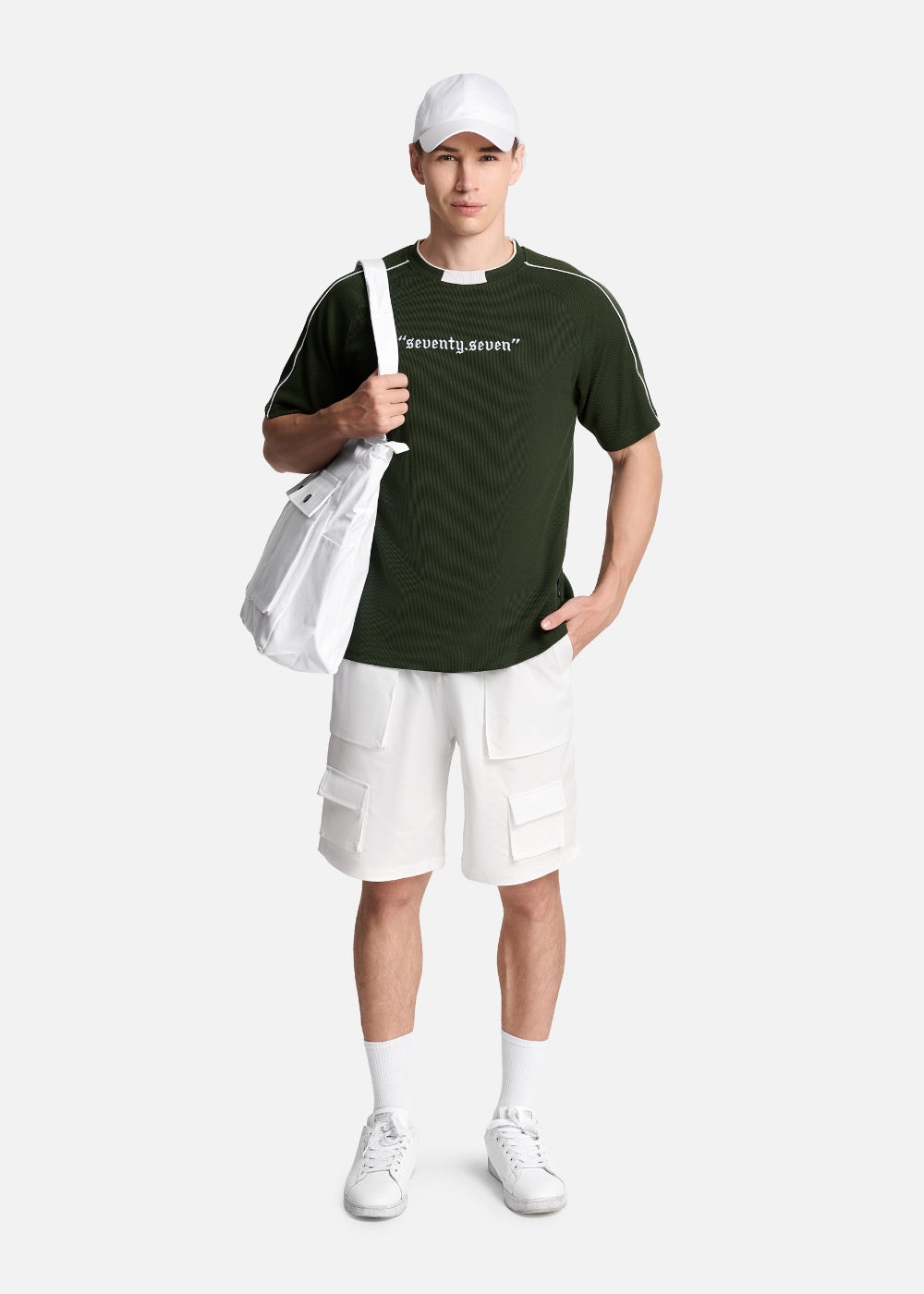 Áo Thun Tay Ngắn Vải Ribbing Co Giãn Seventy Seven 045 Xanh Lá Đậm