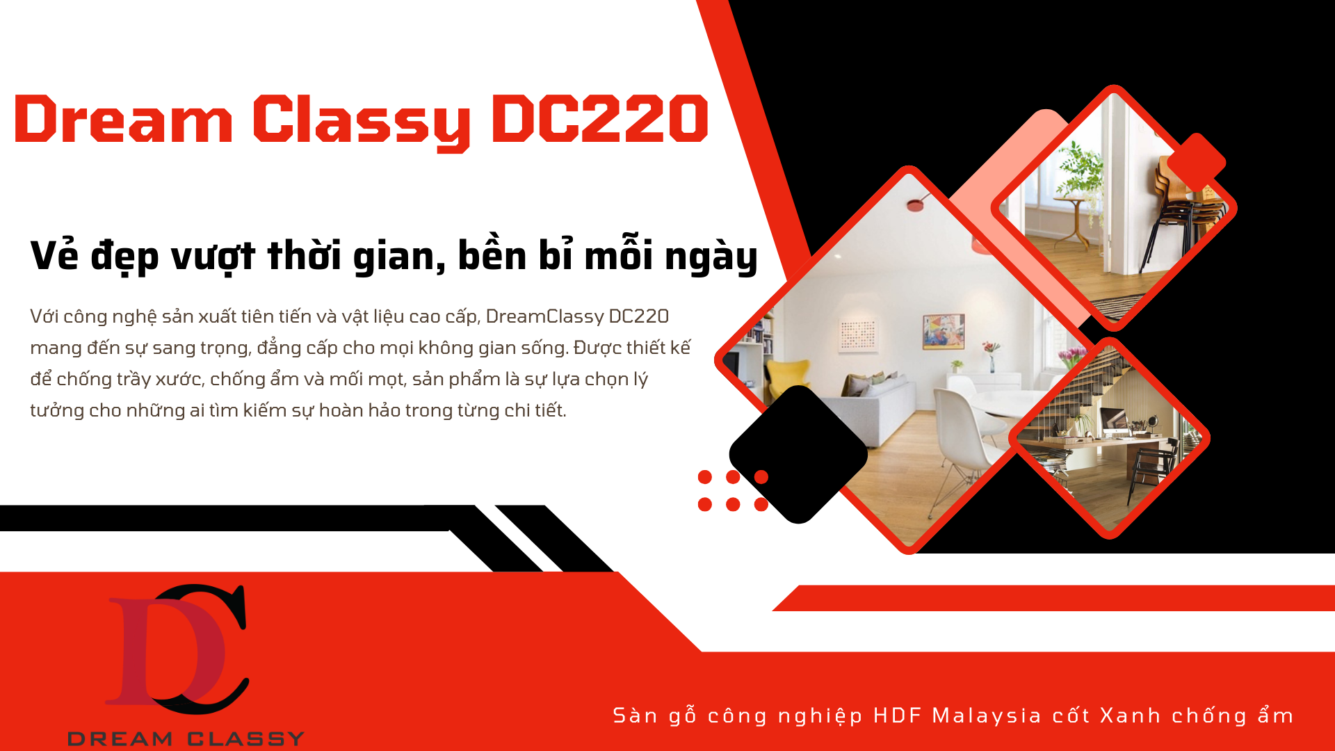 - Dễ Dàng Thi Công và Bảo Trì: Sàn gỗ DreamClassy DC220 dễ dàng lắp đặt và bảo dưỡng, giúp bạn tiết kiệm thời gian và chi phí.