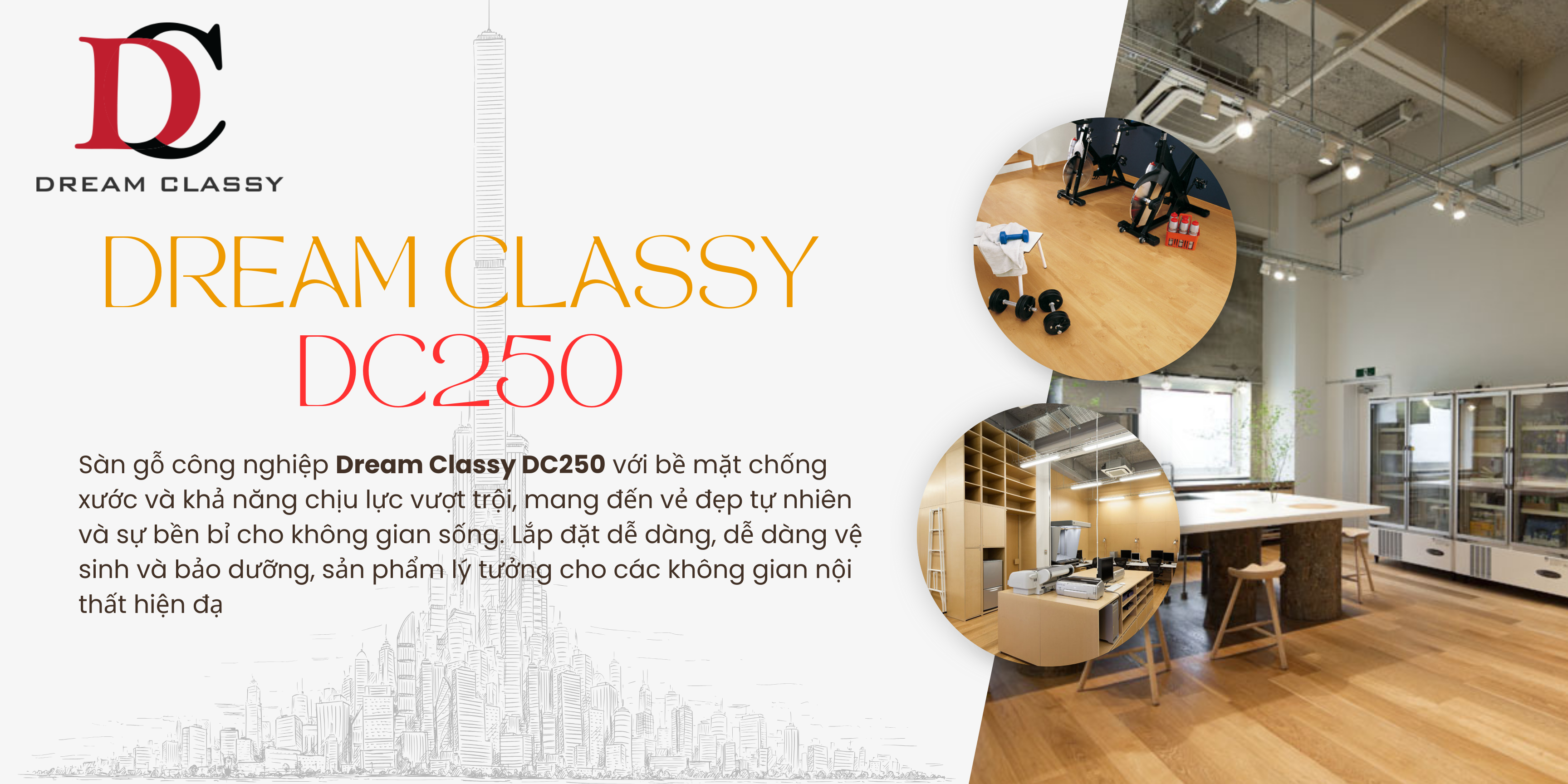 - Dễ Dàng Thi Công và Bảo Trì: Sàn gỗ DreamClassy DC250 dễ dàng lắp đặt và bảo dưỡng, giúp bạn tiết kiệm thời gian và chi phí.