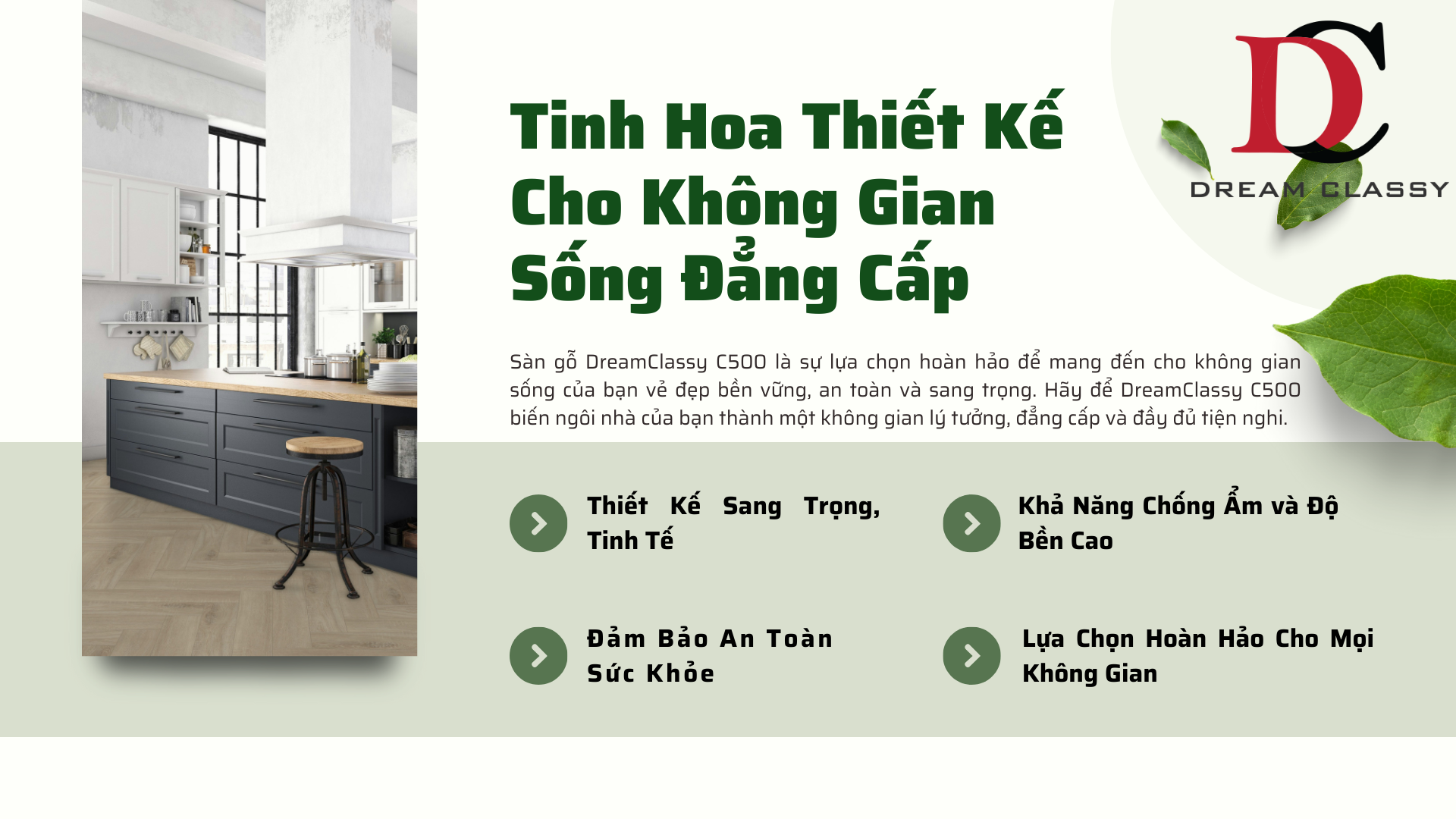 Hãy nâng tầm không gian sống của bạn với sàn gỗ công nghiệp DreamClassy C500. Liên hệ ngay để nhận tư vấn và đặt hàng, tận hưởng chất lượng sàn gỗ cao cấp mà bạn xứng đáng có!